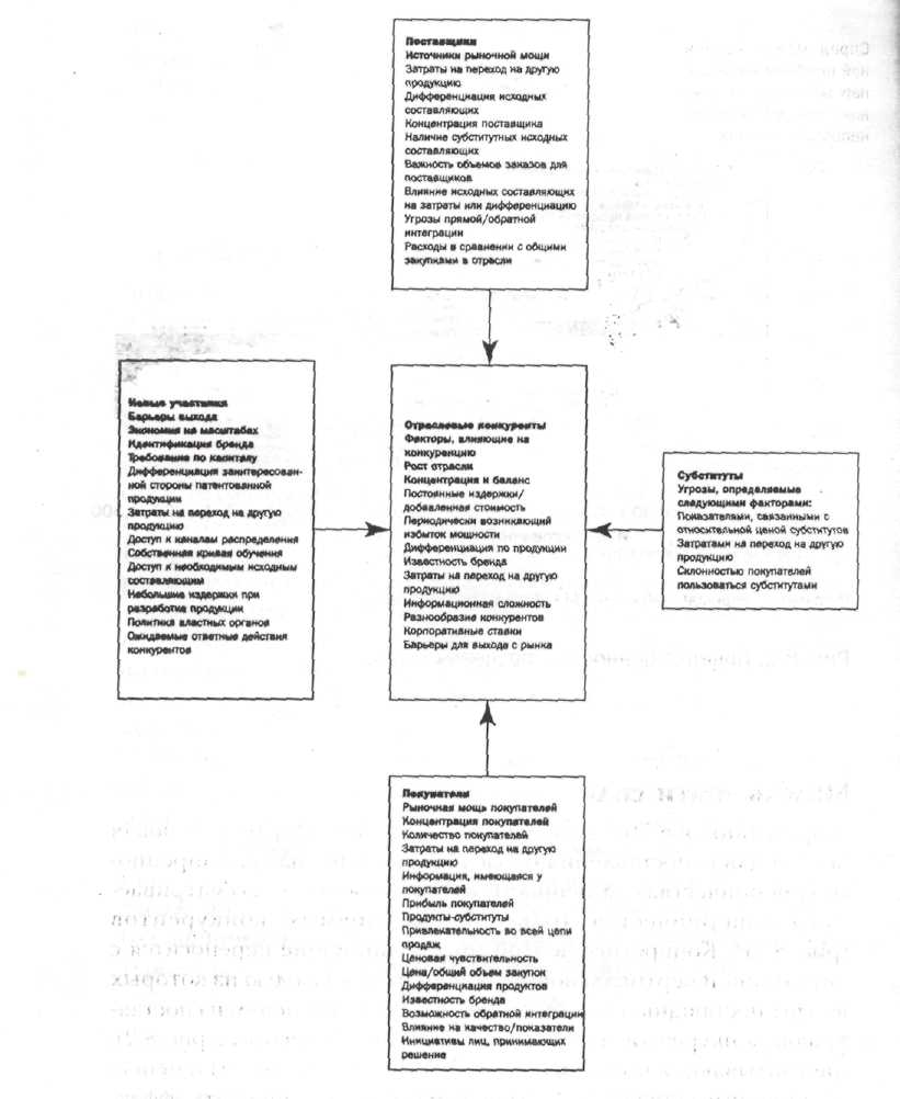 Уровень конкуренции в отрасли определяется пятью силами (модель пяти сил конкуренции М.Портера):