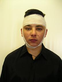 8. Зафиксировать конец бинта на лобной части головы вне раневой поверхности.