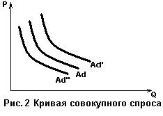 Под совокупным спросом понимают реальный объем национального производства, которое потребители готовы купить при данном уровне цен. Потребители – это индивидуальные хозяйства, предприятия, государство. Совокупный спрос зависит от уровня цен, данная зависимость выражается кривой Ad (рис.30).