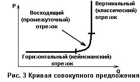 ¨ вертикальный (классический участок) отражает затраты полного использования резервов (полную занятость), и рост цен не может привести к увеличению объема производства. Следовательно, дальнейшее наращивание общественного производства невозможно из-за того, что имевшиеся ограниченные ресурсы исчерпаны. Это значит, что национальное производство и совокупное предложение приобрели фиксированный характер и не зависят от уровня цен;
