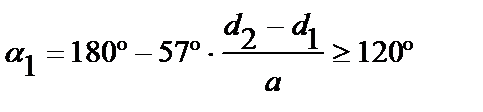 Угол обхвата ремнем малого шкива не должен быть меньше 1200.