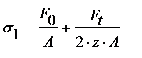 где σ1 – напряжение растяжения в ведущей ветви, МПа,