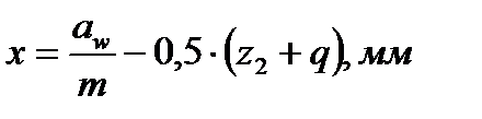 По условию неподрезания и незаострения зубьев колеса значение x должно находиться в пределах от единицы до минус единицы. Если это условие не выполняется, то рекомендуется варьировать значениями q и z2. При этом z2 можно изменять не более, чем на 1…2 зуба.