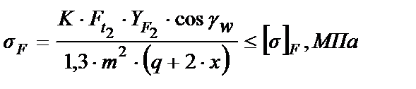Определение расчётного напряжения изгиба зубьев червячного колеса