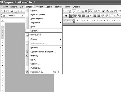 Это может быть ссылка на определенную страницу того или иного источника из общего списка. Такая ссылка оформляется в квадратных скобках, например: [25, С. 15] – это ссылка на 15 страницу источника № 25. Для того, чтобы поставить квадратные скобки, надо перейти на латинский шрифт либо выбрать эти символы из встроенного списка символов: пункт меню «Вставка», подпункт «Символ…» (рисунок 3).