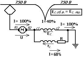 При подаче напряжения (после снятия) или значительном его колебании, когда движение поезда происходит на ослабленном поле, в обмотках возбуждения возрастает э.д.с. Э.Д.С. самоиндукции, которая направлена навстречу основному току, и ток по обмоткам возбуждения какое-то время протекает незначительный или совсем исчезает. Тогда весь ток после цепи якорей, устремляется по параллельной шунтирующей цепи, через электрическое сопротивление. В этом случае магнитный поток обмоток возбуждения резко уменьшается. Э.д.с. Якорных обмоток также уменьшается, а это приводит к возрастанию тока в обмотках якорей. В результате чего появляется круговой огонь на коллекторе, опасный для тяговых двигателей. Наличие индуктивного шунта в шунтирующей цепи такой же индуктивности, как и в обмотках возбуждения, приводит к выравниванию цепей, т.е. При данных условиях возникает одинаковая э.д.с. самоиндукции, а следовательно, и распределение токов будет зависеть от электрического сопротивления в параллельных цепях.