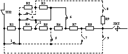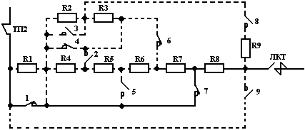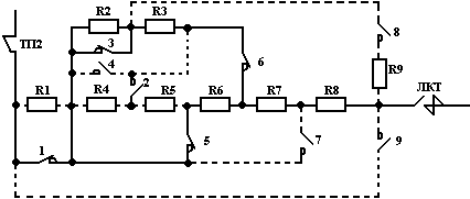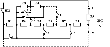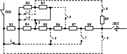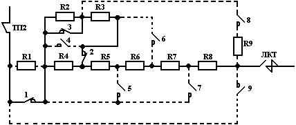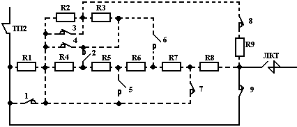 6 → пуско-тормозные резисторы R7-R8 → линейно-тормозной контактор ЛКТ… общее сопротивление на 9 позиции составляет 2,82 Ом.