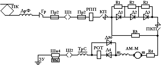 Первый разрядник Рр-1 служит для защиты от грозовых перенапряжений на токоприёмнике, а второй Рр-2 для отвода перенапряжений возникающих на конденсаторе.