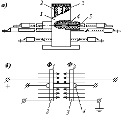 Дифференциальное реле 1Р.006 (а) и его магнитные потоки (б):