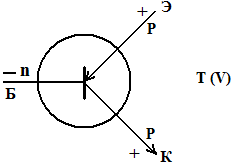Транзистор – прибор, выполненный из трёх полупроводников – триод – служащий для усиления электрических сигналов. Транзистор – управляемое сопротивление, две области у которого одинаковы, а средняя противоположной проводимости. При приложении напряжения между эмиттером и базой, транзистор открывается и ток потечёт от эмиттера к коллектору. Ток базовый в дальнейшем регулирует величину тока коллекторного, т.е. чем больше базовый ток, тем больше будет ток коллекторный.