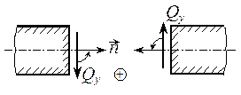 Поперечная сила считается положительной, если кратчайшее совмещение вектора с вектором внешней нормали происходит против часовой стрелки.