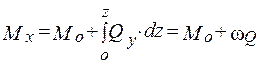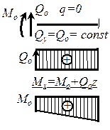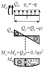 где Qo и Mо соответственно поперечная сила и изгибающий момент в начале участка, w Q – площадь эпюры Q от начала участка до рассматриваемого сечения.