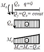 | 1. На участке, свободном от погонной нагрузки (q = 0), поперечная сила постоянна, а изгибающий момент изменяется по линейному закону. |