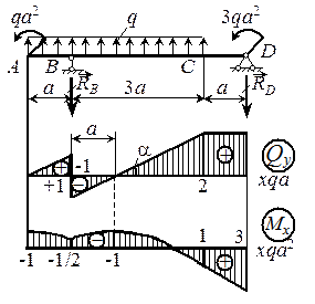 Проверка: å y = 0, RA - RB + qa = 3 qa /4 - 7 qa /4 + qa º 0.