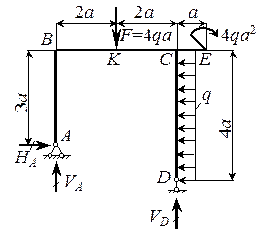 - VA ×4 a - НА × a - 4 qa 2 + q ×4 a ×2 a + F ×2 a = 0, откуда VA = 2 qa.
