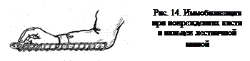 – прибинтовать шину в области кисти восходящей колосовидной повязкой, в области лучезапястного сустава — восьмиобразной, в области предплечья — спиральной повязкой;