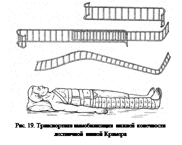 – придать поврежденной конечности среднефизиологическое положение (разогнуть в тазобедренном и коленном суставах, согнуть под углом 90о в голеностопном суставе);