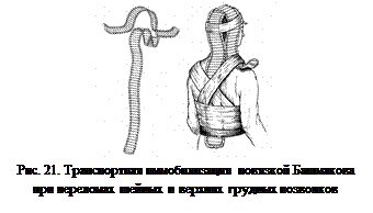– выстелить обе шины достаточно толстой ватно-марлевой прокладкой и укрепить ее бинтами;