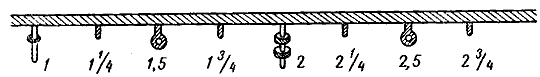 Ручной лаг состоит из троса — лаглиня, разбитого на равные отрезки по 14, 6 м, и буйка. Разбивку лаглиня начинают с расстояния в полторы-две длины корпуса судна от буйка. В этом месте вплескивают (вплетают) красный флагдух и далее равные отрезки лаглиня отмечают узелками. Схема разбивки лаглиня показана на рисунке (рис. 17). Лаглинь изготовляется из бельного растительного троса толщиной 25 мм. Трос прикрепляется к буйку-сектору (рис. 18), который удерживается водой судна. Сектор изготовляется из дубовой доски толщиной 15 мм. К нижней его кромке крепится свинцовая пластинка, придающая сектору в воде вертикальное положение. Скорость судна определяется по времени и количеству вытравленного (выпущенного за корму) лаглиня. Если за 0, 5 мин. будет вытравлено лаглиня от красного флагдуха до первого узелка, это значит, что судно идет со скоростью 1 узел, если вытравлено лаглиня до второго узелка — со скоростью 2 узла и т. д.