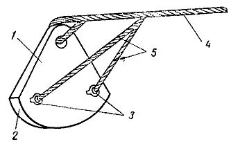 Рис. 18.. Ручной лаг 1 — сектор; 2 — свинцовая пластина; 3 —клеванты; 4 — лаглинь; 5 — путики