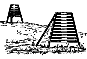 Створные знаки устанавливаются на берегу для указания судового хода на фарватерах и в узкостях (рис. 3). Они служат для обеспечения безопасности прохода судов в районах со стесненными условиями плавания. Кроме того, створные знаки устанавливаются при оборудовании мерных линий для обозначения направления движения судна и секущих направлений для замеров скорости хода судна на различных режимах работы двигателя. Знаки бывают деревянными, металлическими, каменными, освещаемыми и неосвещаемыми. Днем на белых (черных) трапециевидных щитах отчетливо видны черные (белые) вертикальные полосы, а ночью в верхней части щитов зажигаются огни, чаще всего красного или зеленого цвета, чтобы их легко было отличить от любых случайных огней населенного берегового пункта. Направление линий створов на фарватере, узкости или мерной линии нанесено па навигационной карте. На карту мелкого масштаба нельзя одновременно нанести два створных знака, тогда наносят один знак и линию, а рядом ставят пояснительную надпись «2 ств. зн.».