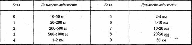 Одним из важнейших факторов безопасного плавания.для судоводителя является видимость (дальность видимости) - расстояние, на котором днем исчезают последние признаки наблюдаемого объекта (становятся неразличимыми его очертания), а ночью становится неразличимым нефокусированный источник света определенной интенсивности. Видимость оценивается в баллах, глазомерно по ряду объектов, расположенных на различных расстояниях от наблюдателя, по международной шкале видимости (см. таблицу):