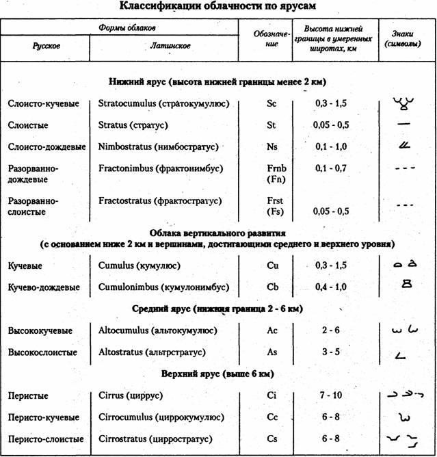 - характер облачности (слоисто-дождевой, кучевой разорванной, кучево-дождевой) не меняется;