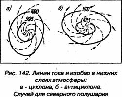 Распределение воздушных потоков в барических системах представлено на рис 142.