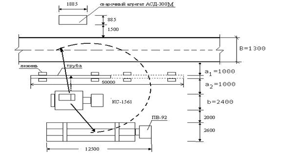 Рис. 3 Схема разгрузки труб с трубовоза со сборкой их в секции.