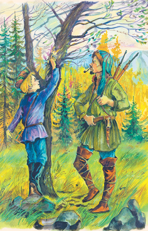 По маральей тропе мы пошли в горы. По сторонам от тропы валялись вывороченные камни. Это медведи разрывали бурундучьи норы, чтоб добраться до их запасов, и выбрасывали камни вместе с землёй. На одной лиственнице вся кора была содрана медвежьими когтями.