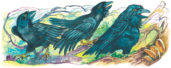 Мы хотели уже возвращаться, как вдруг услышали: где‑то далеко закричал ворон. Над нами пролетел к нему второй – только слышно, как крылья шумят в воздухе.