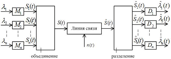 которые в устройстве уплотнения (объединения) преобразуются в групповой сигнал