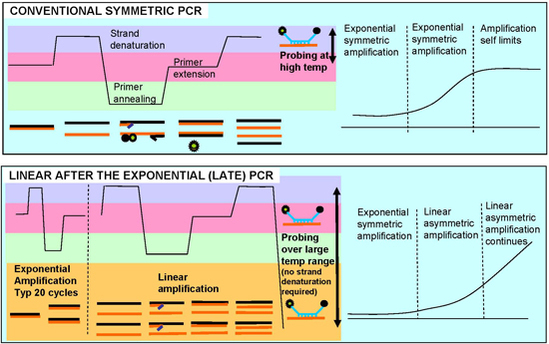 LATE-PCR является новый вид асимметричная ПЦР, которая обеспечивает значительные технические преимущества над симметричными ПЦР в реальном времени, а также позволяет для анализа конечной точки высокого качества.