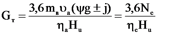 Поскольку масса водителя mв в собственную массу снаряженного автомобиля mо не входит и является условно полезной, то минимальные значения полезной мощности Nа, КПД ηа и транспортной производительности автомобиля Wа при mг = mв не имеют нулевых значений и позволяют определить часовой расход топлива порожним автомобилем