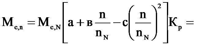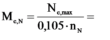Nе, max = …кВт при частоте вращения коленчатого вала nN = …мин-1 и максимального крутящего момента Ме,max = …кН∙м при частоте вращения коленчатого вала nм = …. мин-1 определяем: