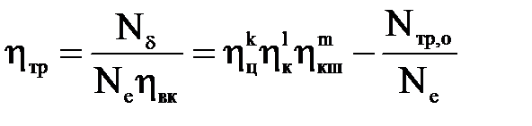 При поверочном динамическом расчете автомобиля реальную сумму параллельных потоков мощности (4.20) заменяем одним потоком, подобным мощности Nδ в формуле (4.24), а КПД трансмиссии определяем расчетом по формуле