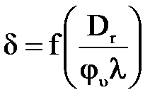 и определяем по левой шкале левого поля значение δ и длину верхнего отрезка 1 – δ на этой шкале.