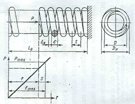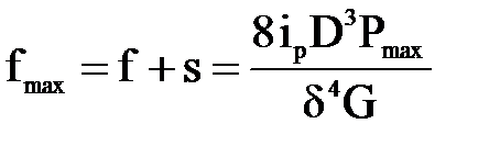 Обычно принимают Рmax =1,2 Р и из условия прочности пружины находят диаметр проволоки δ, а затем средний диаметр D витка по формулам