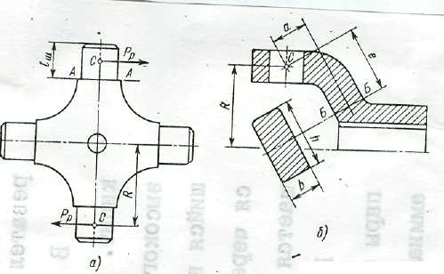 Расчет шарнира производят при допущении, что расчетная окружная сила Рр (рисунок 6.7), нагружающая каждый шип крестовины и выступ вилки, приложена в точке, лежащей посередине длины шипа, и равна