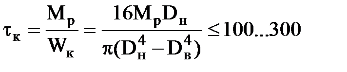 Карданный вал рассчитывают на кручение и критическую частоту вращения. Условие прочности при кручении: