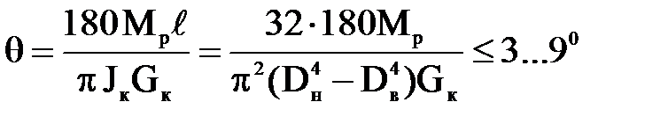 где θ – угол закручивания вала на 1м его длины при передаче расчетного крутящего момента Мр;