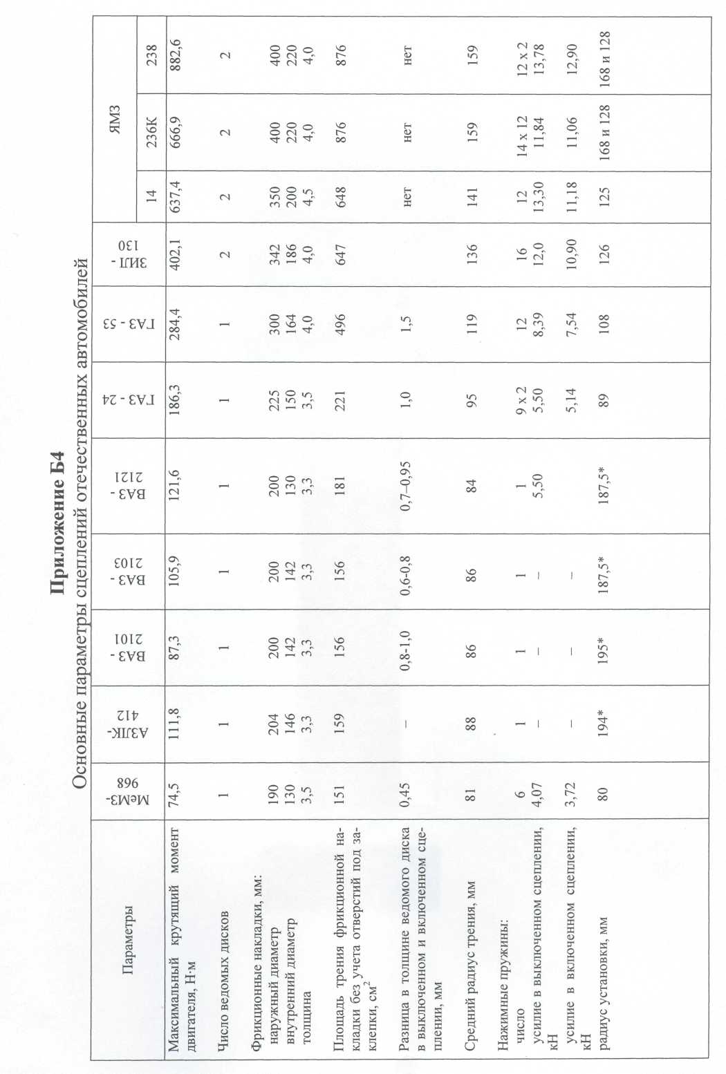 | Автомобили | Соединяемые агрегаты | М, Н·м | d, мм | δ, мм | Lк, мм | Типоразмер шарнира ОСТ 37.001.068–76 |