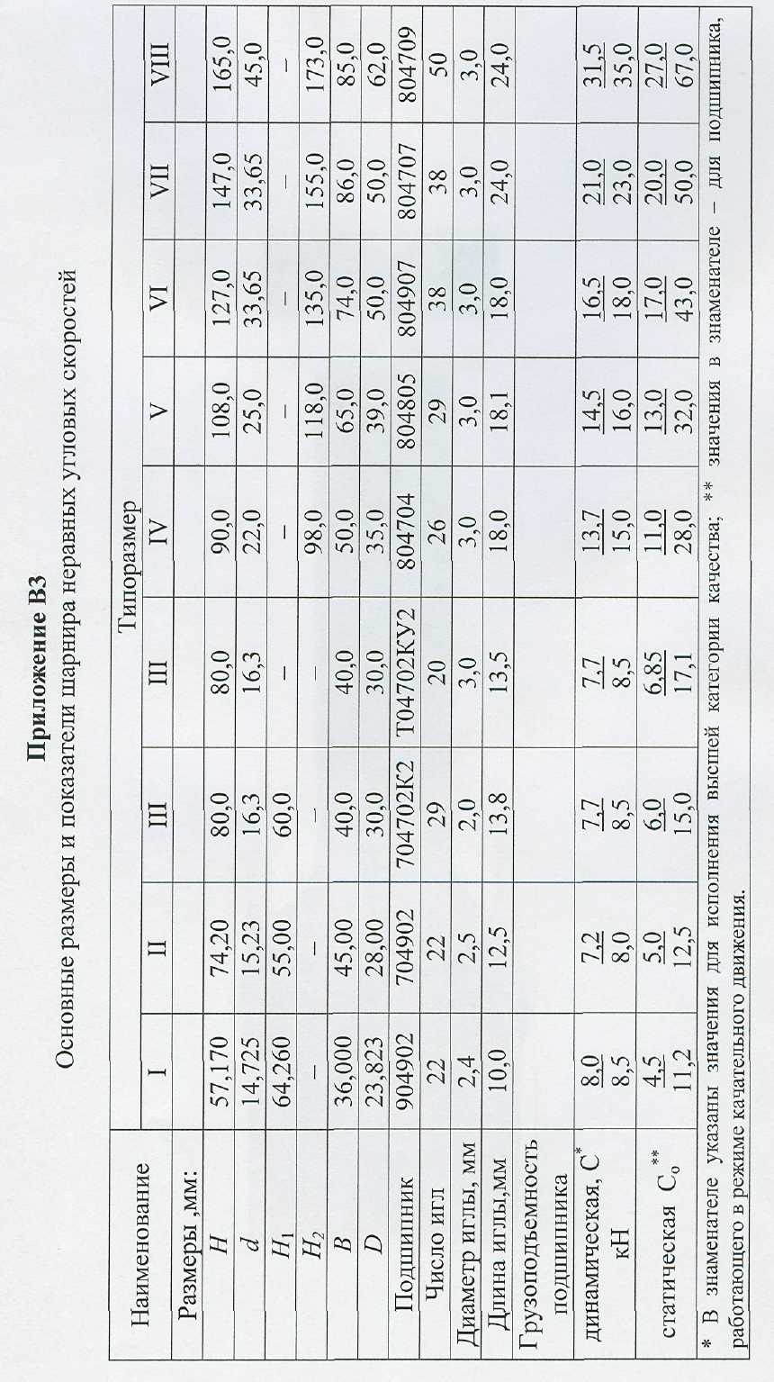 | Грузоподъемность подшипника: статическая Со кН динамическая С, кН | 38,20 20,65 | 58,0 30,84 | 40,21 21,39 | 55,10 29,79 | 50,75 28,20 | 58,0 30,84 | 55,24 30,41 |