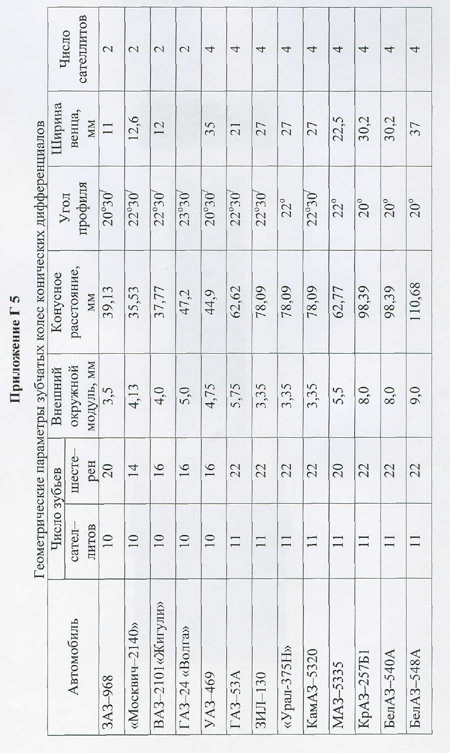 | Угол наклона линии винтового зуба | 16о07/05// | 16о14/53// | 20о | 19о | 19о | 18о | – |