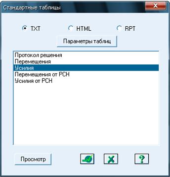 В диалоговом окне «Стандартные таблицы» производится выбор нужной таблицы из списка результатов, созданного на основании текущей задачи (рис.5.5).