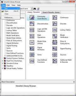 4. Создайте новую модель с помощью верхнего меню открывшегося окна SimulinkLibraryBrowser (File – New – Model)(рис.1.1).