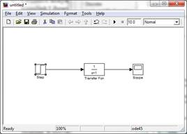 6. Перетащите в окно модели блок Step из группы Sources и установите его слева от блока TransferFcn.