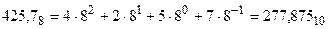Для перевода восьмеричного числа в десятичную систему необходимо разложить его по степеням основания системы 8 и выполнить сложение.