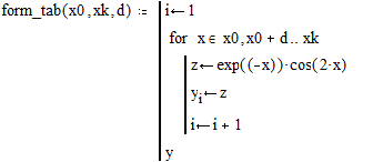 В этом варианте описания программы-функции формальные параметры используются для задания диапазона изменения параметра цикла (переменная x). Для изменения индекса у элемента массива y вводится переменная i целого типа внутри программы-функции. Обращение к описанной программе-функции может иметь вид