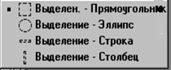 | - выделение прямоугольных областей. - выделение эллиптической области. - выделение горизонтальной строки. - выделение вертикальной строки. | ||||||